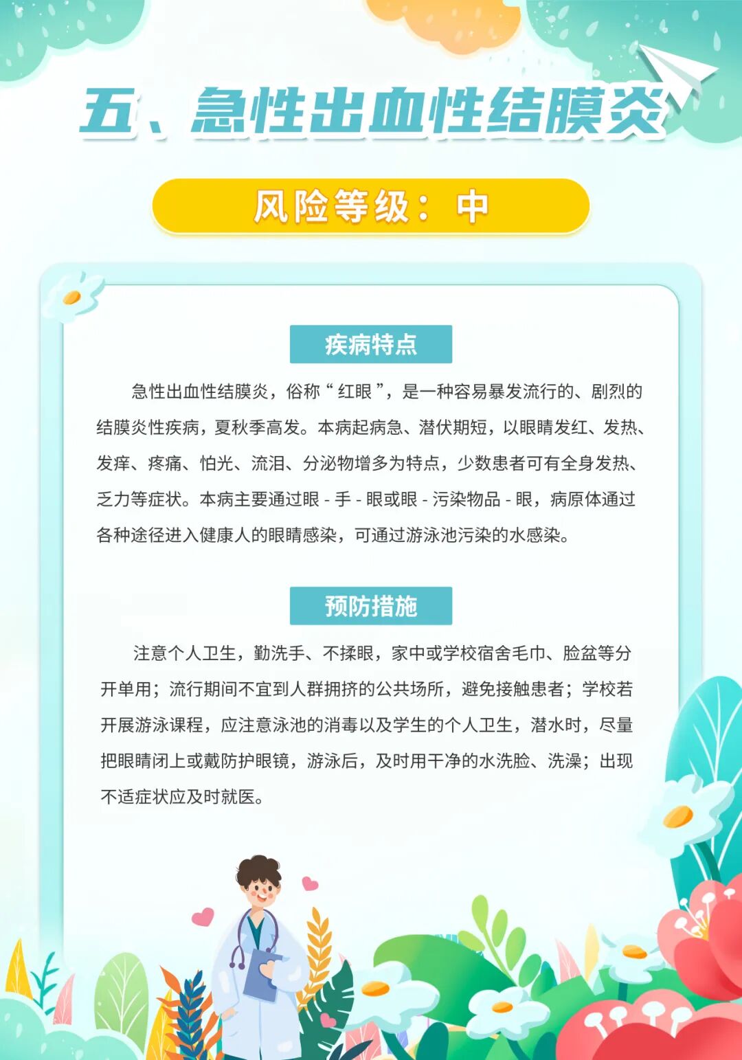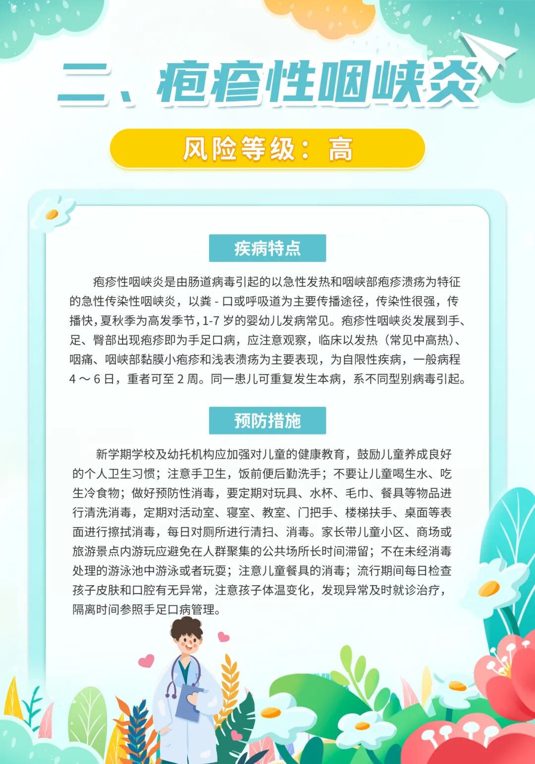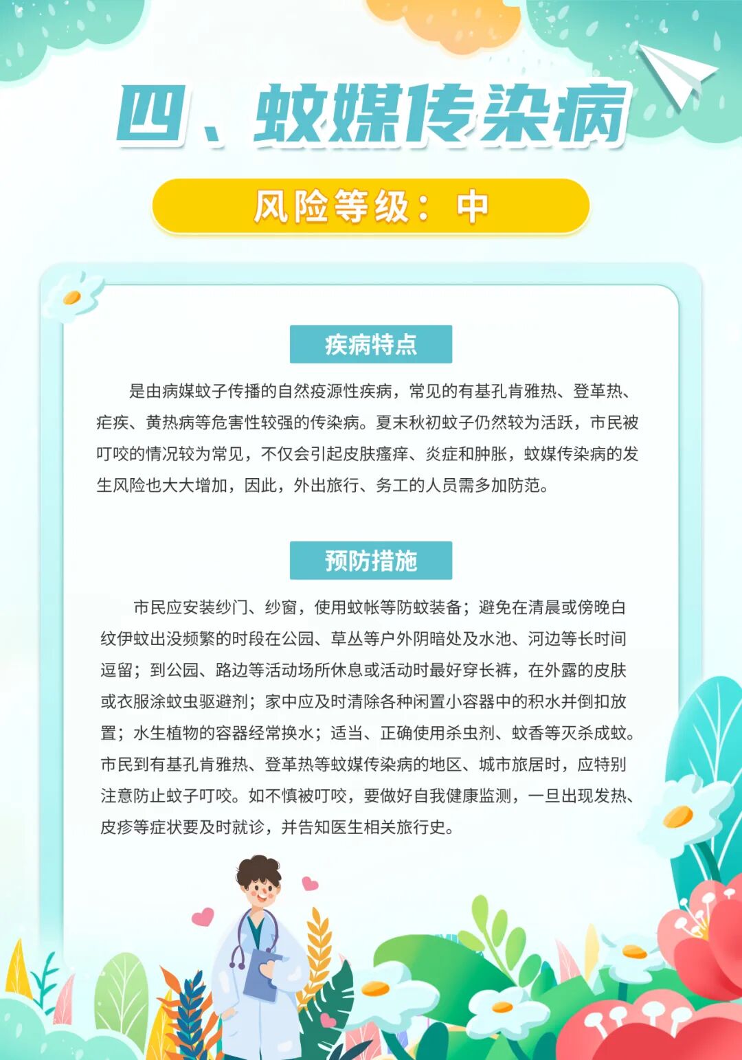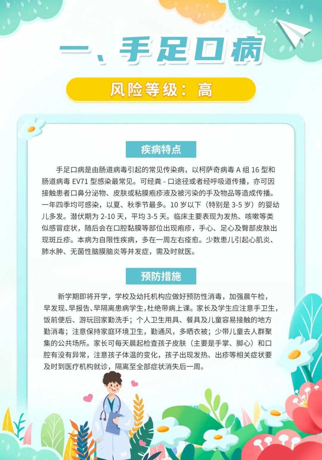 昆山市疾控中心发布2025年9月份疾病风险提示,9月份本市进入了手足口病、疱疹性咽峡炎、肠道和蚊媒传染病、急性出血性结膜炎的高发季节,市民应予以防范,同时应继续做好新冠病毒感染等其他呼吸道传染病的防控工作。